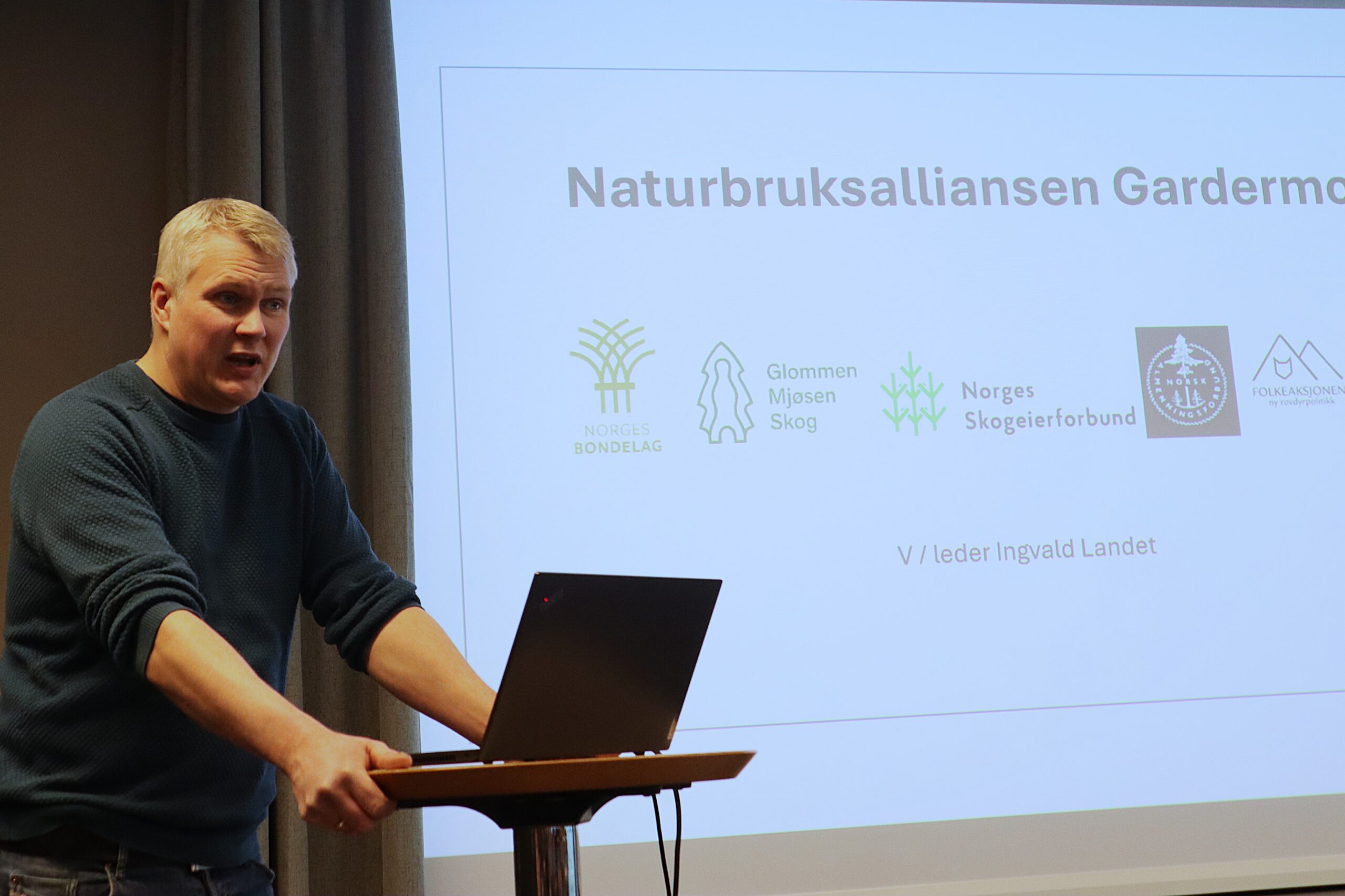 Ingvald Landet, styreleder i Naturbruksalliansen og styremedlem i Innlandet Bondelag, åpnet seminaret. Han konstaterte at 2026 er første vinter uten lisensfelling innenfor ulvesona siden 2019.