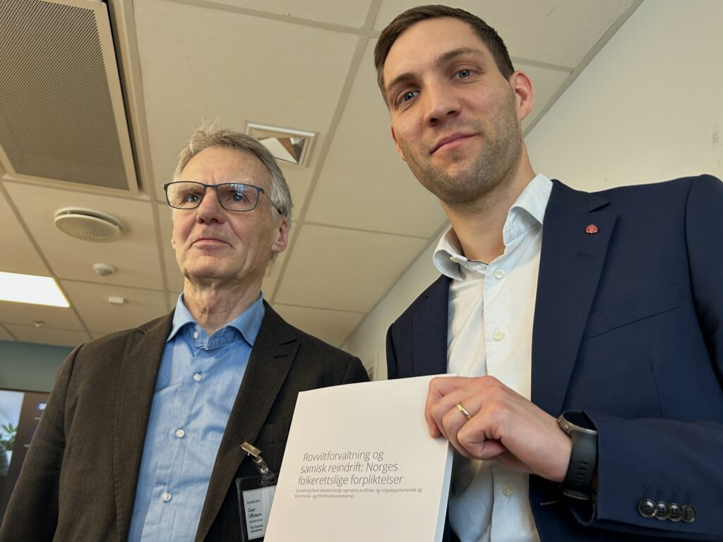Torsdag overrakte utvalgsleder Geir Ulfstein utredningen Rovviltforvaltning og samisk reindrift: Norges folkerettslige forpliktelser til klima- og miljøminister Andreas Bjelland Eriksen (Ap).